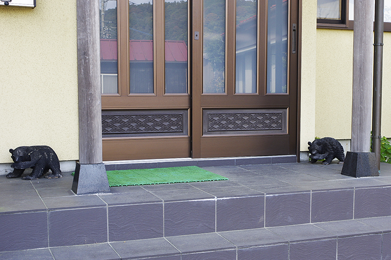 木彫りの熊が堂々と両脇に置かれていた