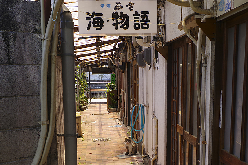 横丁を歩き始めると、ちょうど真ん中あたりに猫がかしこまっていた