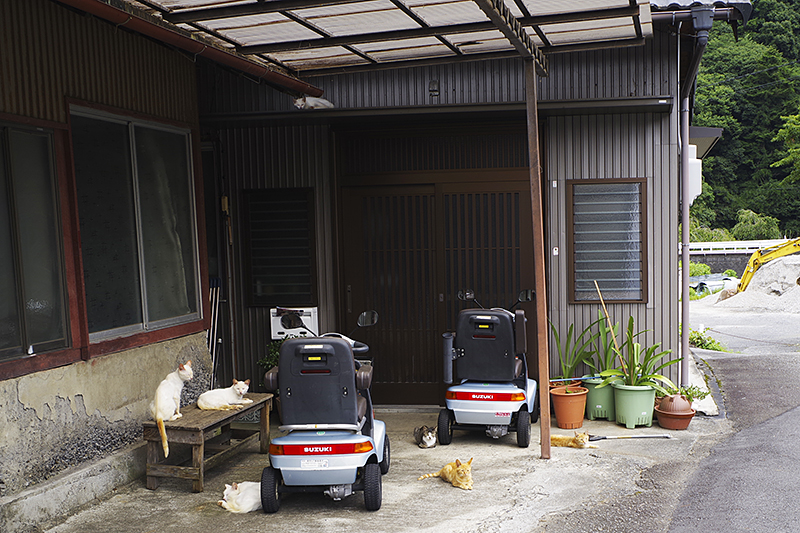 よく見ると、スクーターの奥にも屋根の上にも寝転んでいる