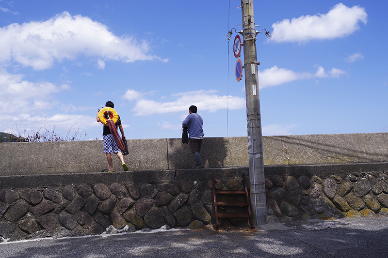 そして防波堤を足取り軽く登ってく若者たちは