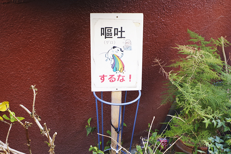 外国の絵本のようなタッチでゲロを吐く人が描かれていた