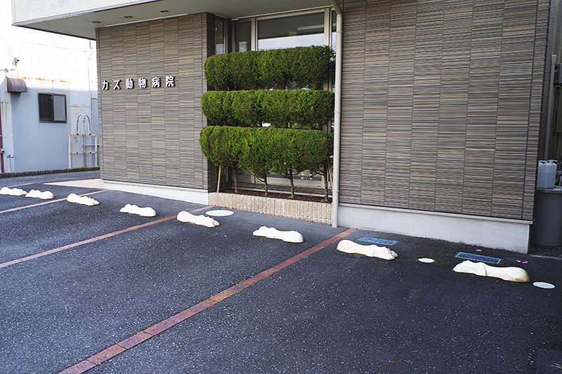 それは犬がくつろいでいる姿をした車止めであった