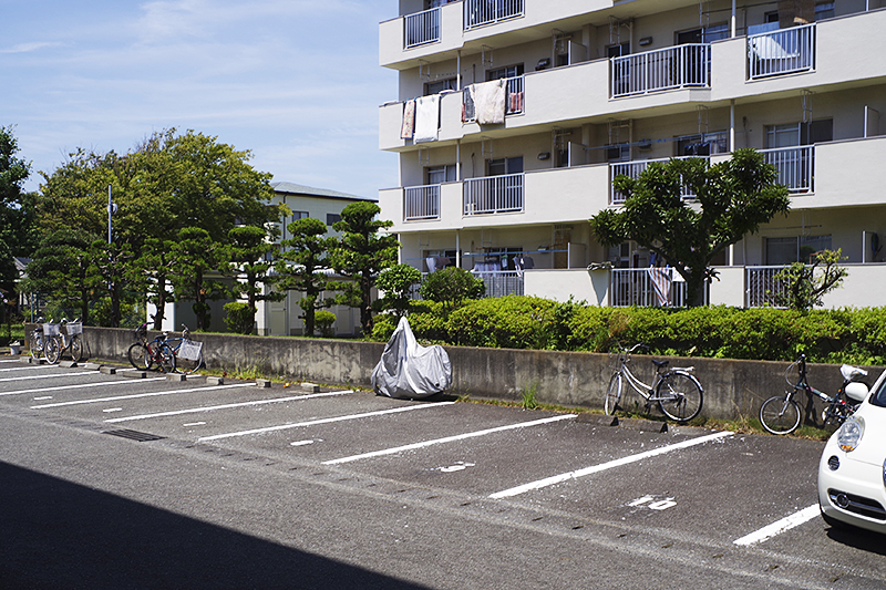 団地の駐車場の後方部分が自転車置き場になっていた