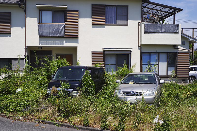 かなり背の高い草が生い茂っている空地に車が2台停められていた