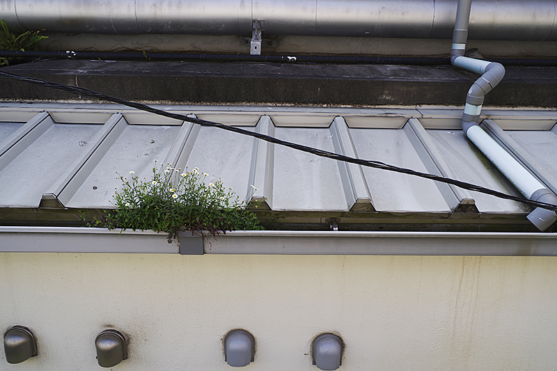 目線の高さに駅の屋根が見えるのだが、雨樋の中には