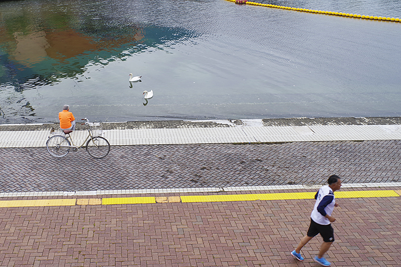 散歩やジョキング、自転車などをしている人がチラホラと見られる