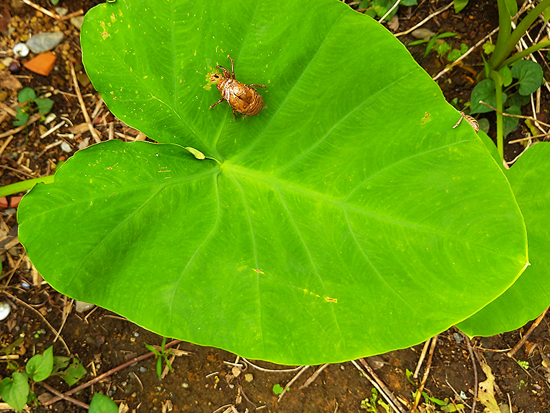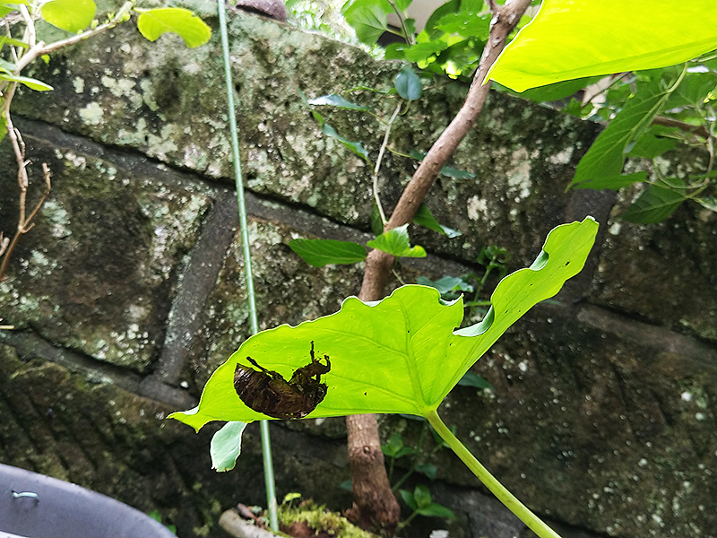 ある日、その葉を見たら蝉の抜け殻が付いていた