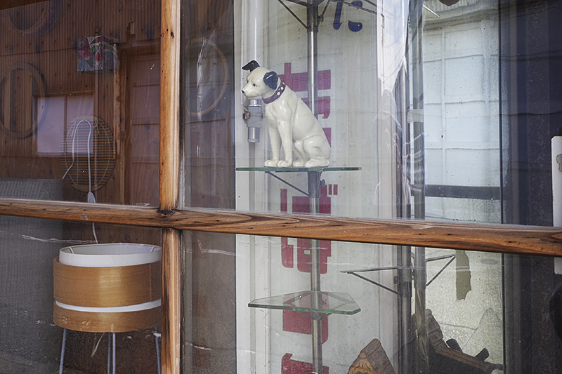 すると、昔はお店をやっていたと思われる住宅の玄関先にビクター犬がいた