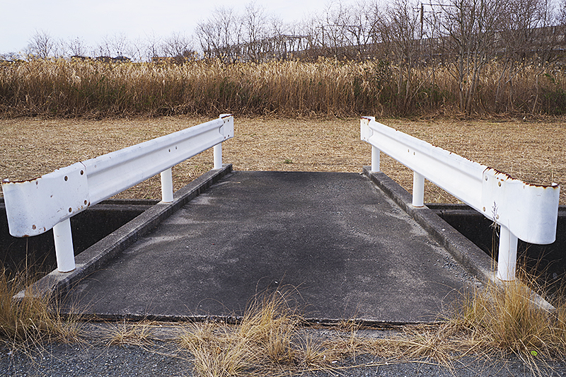 作物を収穫し終えた秋の寒々しい畑の手前には