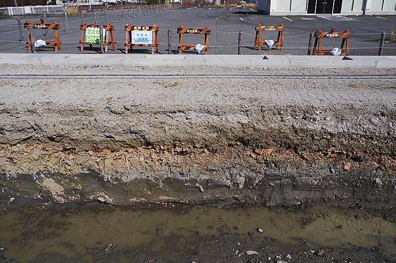 すると掘削断面には、はっきりと地層が形成されており