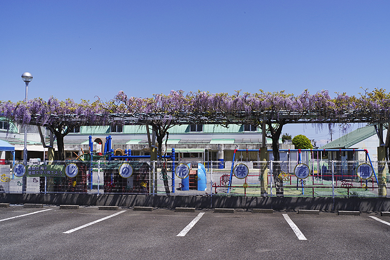 通り沿いの保育園のふじ棚が見ごろになっていた