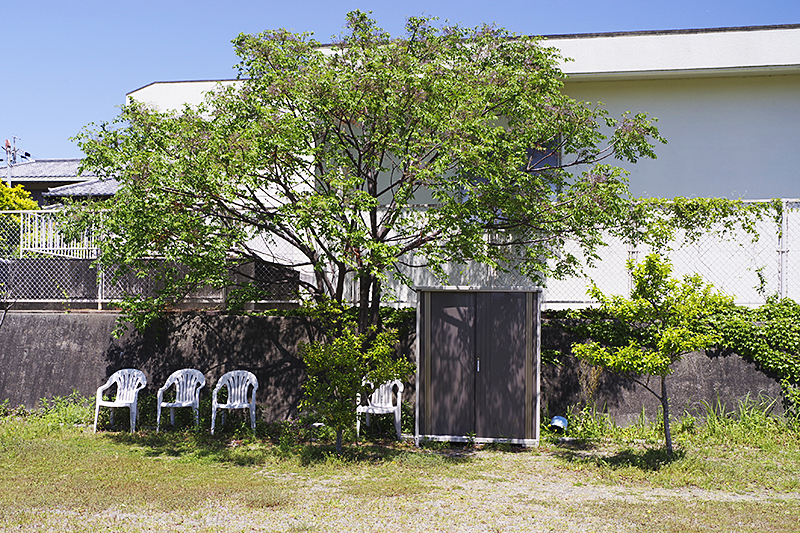 日陰に用意されている公園の白い椅子が当てが外れ、何だか寂しそうに感じられた