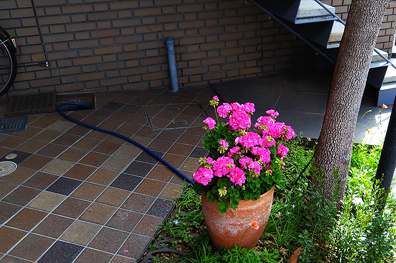 花の名は「ゼラニウム」、別名は「テンジクアオイ」