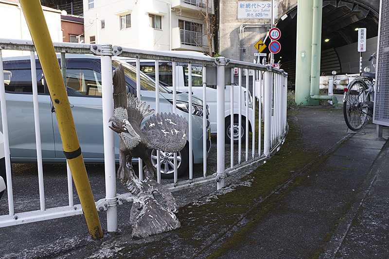 歩いてきた歩道橋の下を見ると、何故だか非常に強そうな鷹の