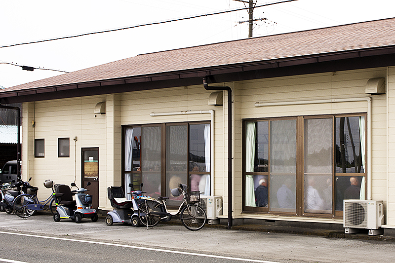 施設の空地には、自転車やシニアカーがたくさん停められていた